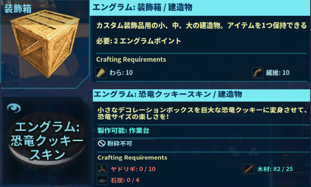 わら×10、繊維×10で作れる『装飾箱』に