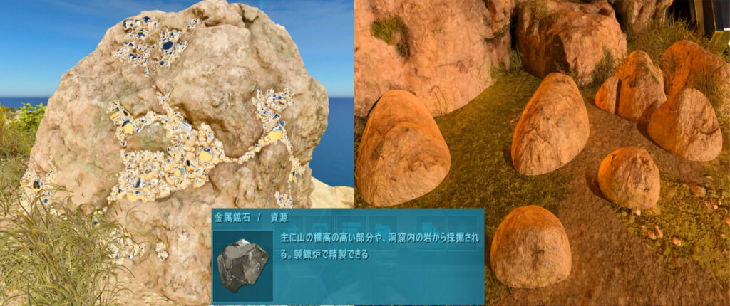 『金属を含んだ岩石』や『河原にある丸石』を