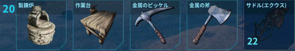 『製錬炉』『作業台』『金属の斧』